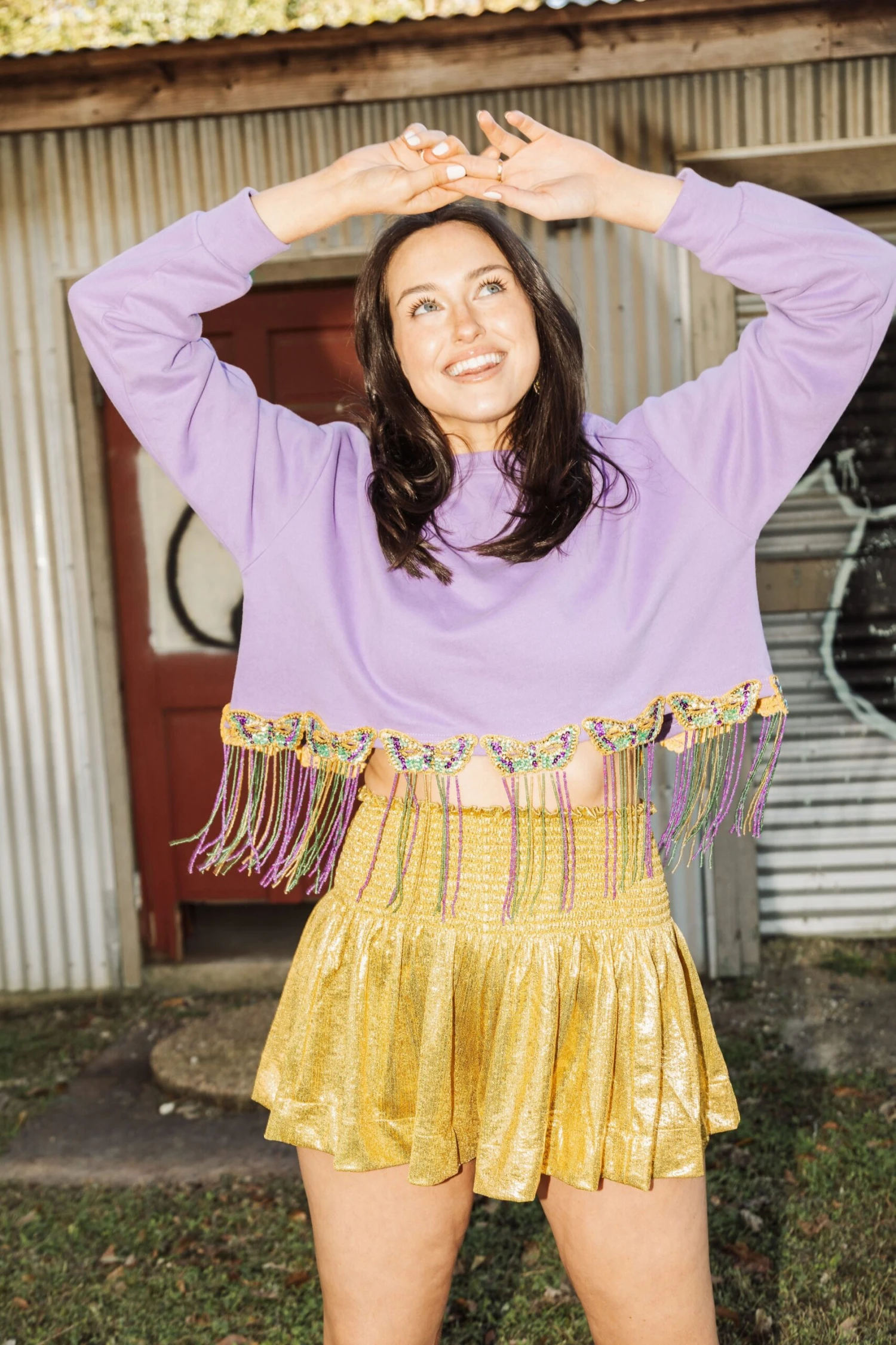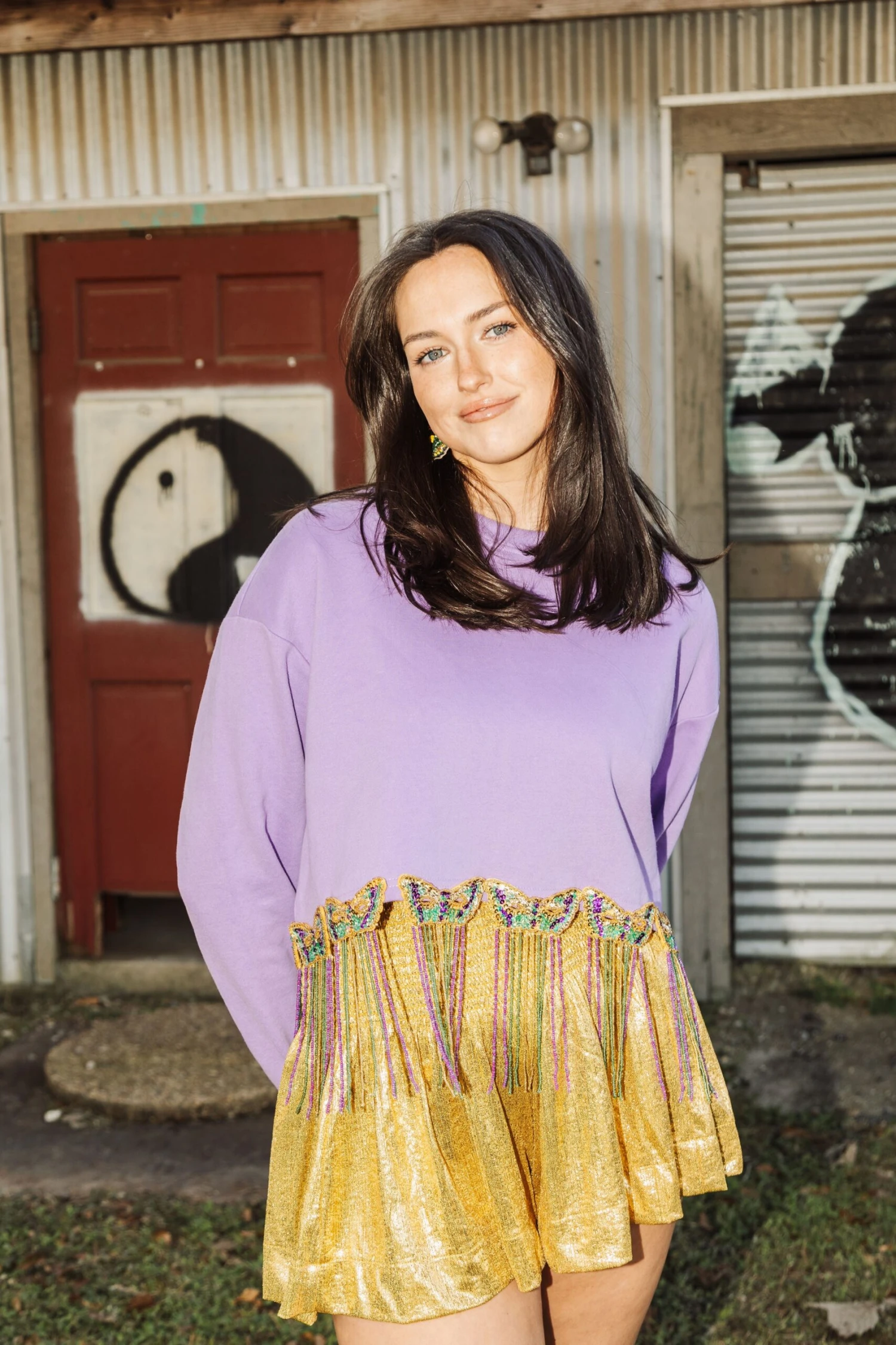 Be the first to review “Queen Of Sparkles Bead Fringe Mask Sweatshirt” Cancel reply
