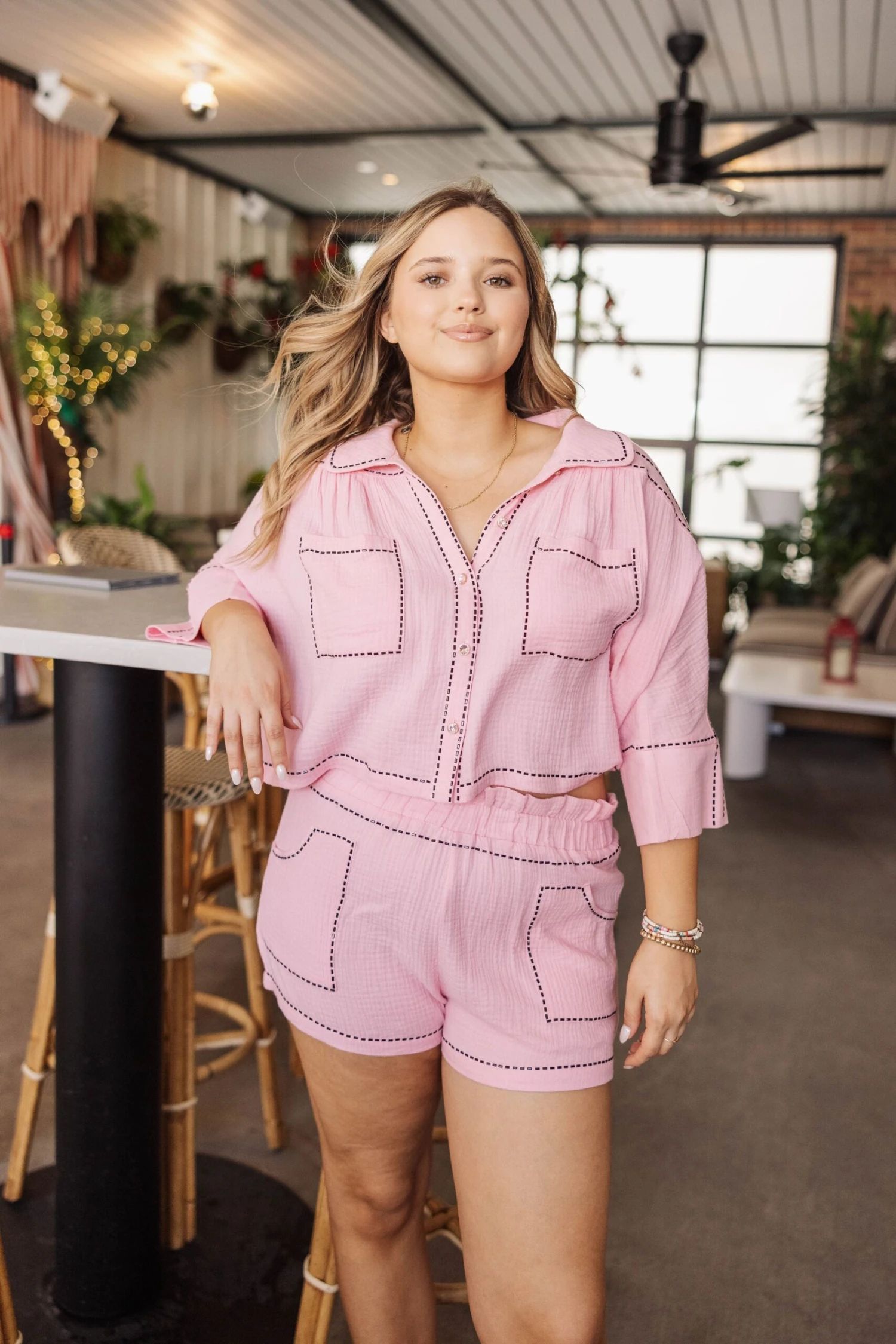 Be the first to review “Queen Of Sparkles Light Pink & Black Gauze Rhinestone Trim Top” Cancel reply