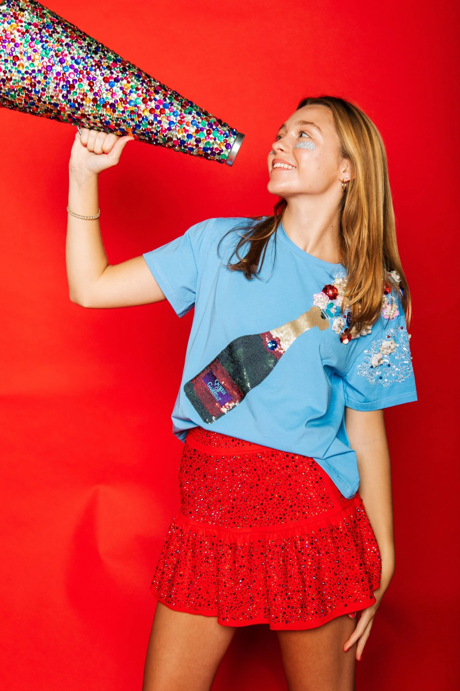Be the first to review “Queen Of Sparkles Powder Blue With Red&Navy Popping Champagne Tee” Cancel reply