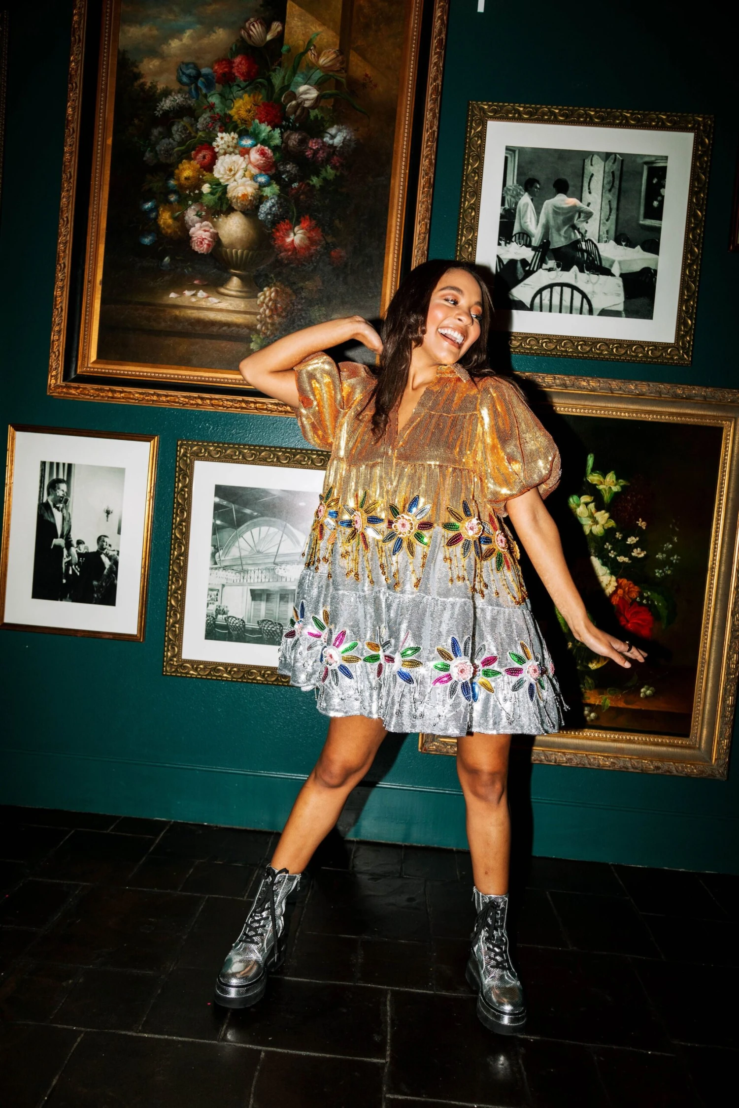 Be the first to review “Queen Of Sparkles Silver & Gold Flower Fringe Dress” Cancel reply