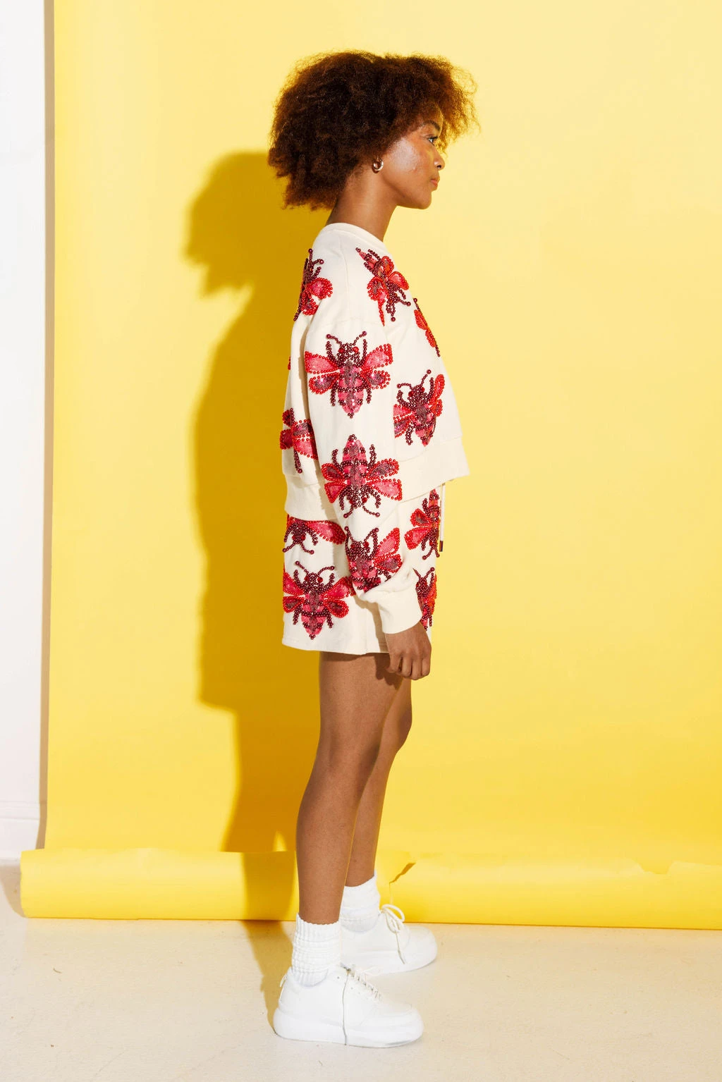 Welcome fresh style and all-day comfort with this Tan & Red Bumble Bee Short lounge set. Constructed with loose fit, high waisted shorts featuring a beaded bumble bee design, this set offers a stylish, trend-forward look for daily wear. Complete the look and shop the matching sweatshirt.