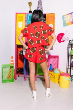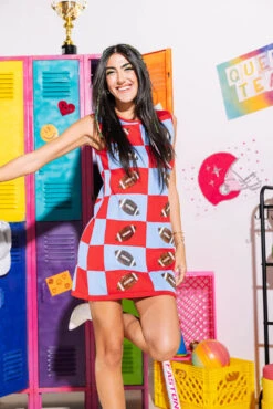 Queen Of Sparkles Red & Powder Blue Football Checkered Dress